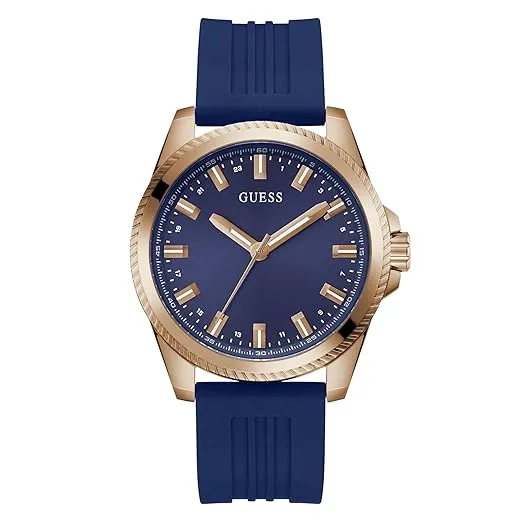 שעון יוקרתי בעיצוב נועז שמשלב סטייל אורבני עם אלגנטיות רבה. גוף השעון עשוי נירוסטה בצבע רוזגולד, זכוכית מינרלית וקוטר 44 מ"מ, המעניקים לו מראה מודרני ומתוחכם. רצועת סיליקון שחורה נוחה ועמידה משלימה את המראה האלגנטי, ומתאימה לשימוש יומיומי לצד הופעות ערב מהודרות.